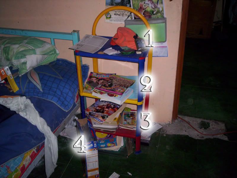 - En el 1º nivel: MI gorra, los restos de mi desodorante, papeles, mi lupa y mi BOLETA CON PUROS 10's de 3º de secun.